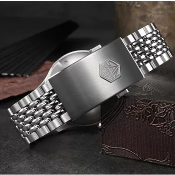 38.5mm Vintage Pilot Automatic Watch with Retro Lume & Stainless Steel Band