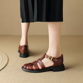 Retro Gladiator Leather Sandals for Women – Mid Heel Summer Shoes